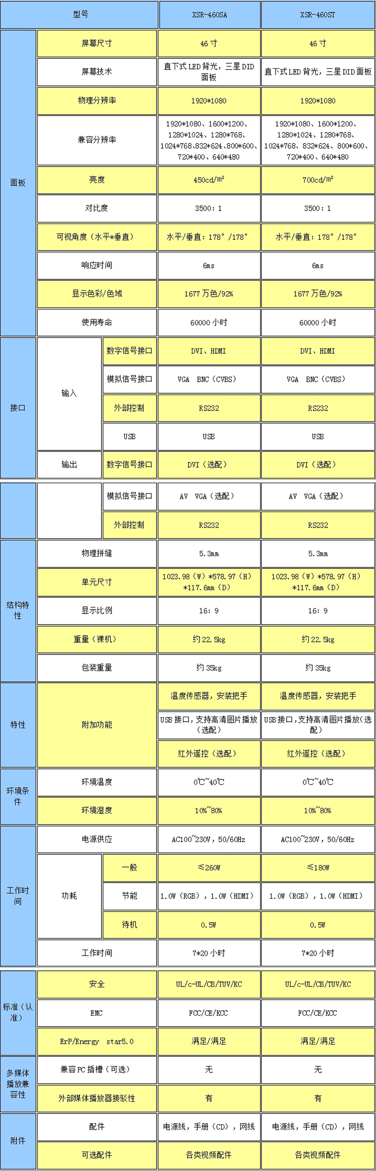 新視銳46寸超窄邊5.3mm拼縫液晶拼接單元產(chǎn)品參數(shù):