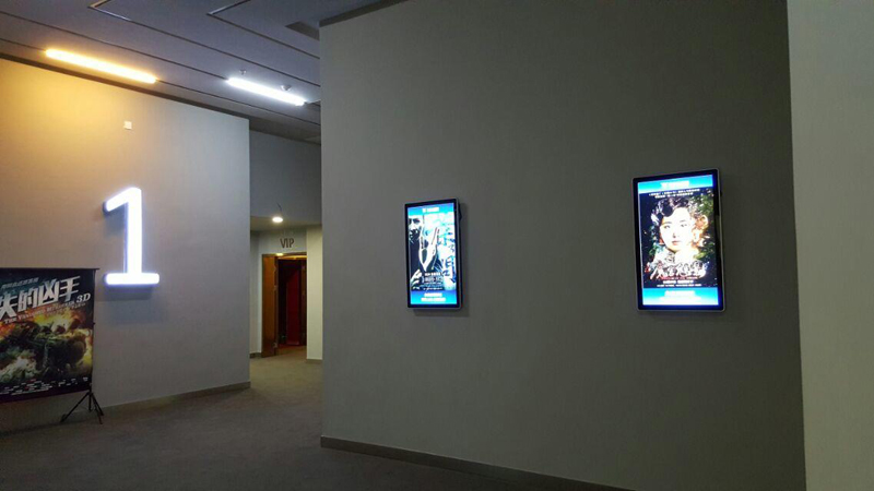 遂寧某電影院,為打造不一樣的看電影氛圍,宣傳新電影及電影上映時(shí)間等,新視銳根據(jù)客戶需求,采用一批豎式42寸廣告機(jī),安裝在去往各個(gè)電影院內(nèi)部走廊倆邊的墻面上的方案。通過(guò)廣告機(jī)播放著當(dāng)日要播放的電影簡(jiǎn)介以及大力宣傳即將上映的各種大片,為廣大喜愛(ài)電影的青年男女們可以提前做好選擇。